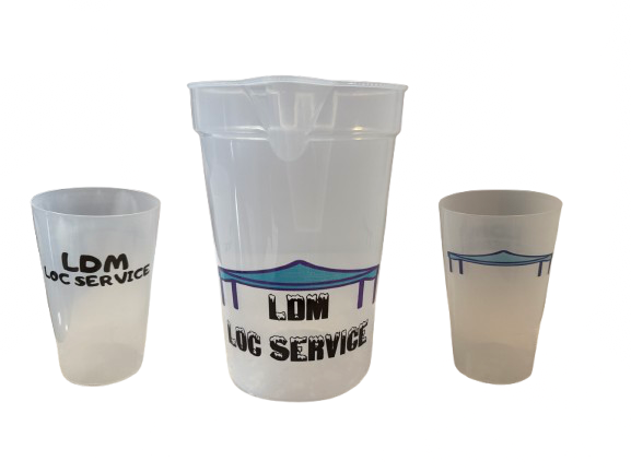 - Pichet plastique avec pub LDM loc service = 0,50€